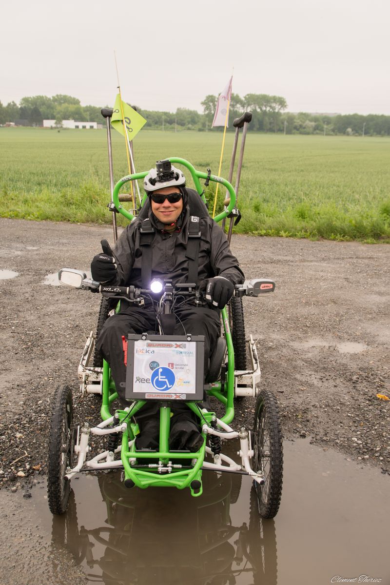 J’ai eu l’occasion de rencontrer Ibrahim Khalil Hamzaoui à plusieurs reprises, j’ai réalisé une interview d’Ibrahim le chercheur, pour le suivre de ce qui était un rêve et qui est devenu possible grâce à la générosité du public et des entreprises et associations, notamment le CNRS, L’IRCICA (Institut de recherche sur les composants logiciels et matériels pour l’information et la communication avancée de Lille) et CRIStAL le Centre de Recherche en Informatique, Signal et Automatique de Lille ou le chercheur réalisera ses analyses qui peuvent prendre quelques mois, XEE et l’APF (Association des Paralysées de France) et aussi Ulule, le site de financement participatif. Un défi exactement de 3006 kilomètres qui a eu lieu de 2 mai au 3 juin 2016.