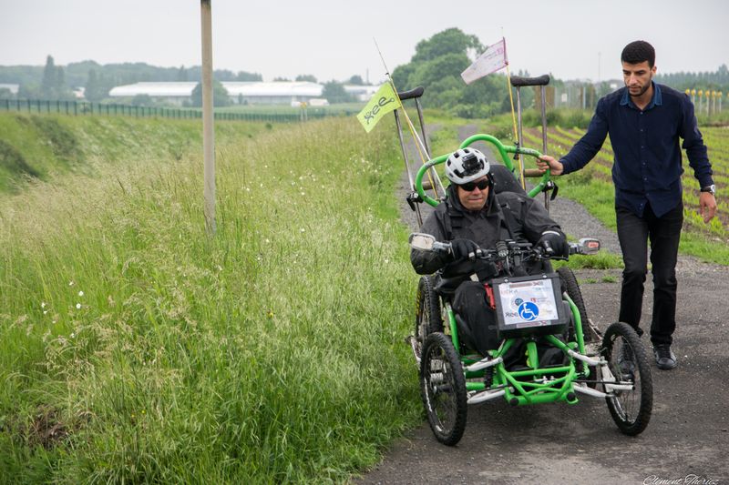 Ibrahim me racontait lors d’un repas mensuel avec des amis de la FEDEEH à Paris le 30 mai dernier et aussi à la dernière étape Valenciennes et Lille avant le départ ou je l’ai accompagné, que cela n’a pas était facile, c’est certes un exploit physique et mental au vu de son handicap, mais c’est un défi qu’il a pris plaisir à relever en prenant du plaisir avec son fauteuil Tout terrain en faisant parfois un bout de chemin accompagné avec des étudiants ou des inconnus rencontraient au long de son parcours parfois semait d’embûches car la météo était pas toujours en sa faveur surtout la dernière semaine, de la pluie, de la boue à cause des inondations, quelques soucis techniques. il a fait preuve d’une force mental à toute épreuve grâce au soutien de son accompagnateur, un ami d’enfant venu du Maroc.