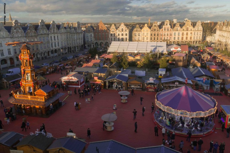 Selon, la Voix du Nord, le premier week-end il y aurait eu plus de 125 000 visiteurs sur le marché de Noël d’Arras et ses 130 chalets.