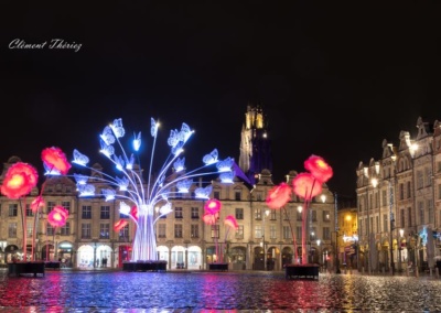 La Cour des Lumières me fait évoquer, la relation qu’a la Ville d’Arras avec Versailles et ses expositions diverses qu’il y a eu au musée des beaux Arts.  Ensuite direction la Grand Place où est située le marché de Noël.